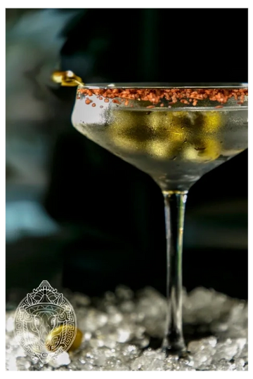 - Rim martini glass with Tajin.