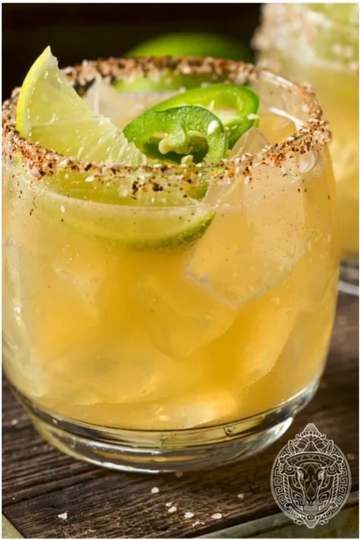 - Rim glass with a slice of lime and dip